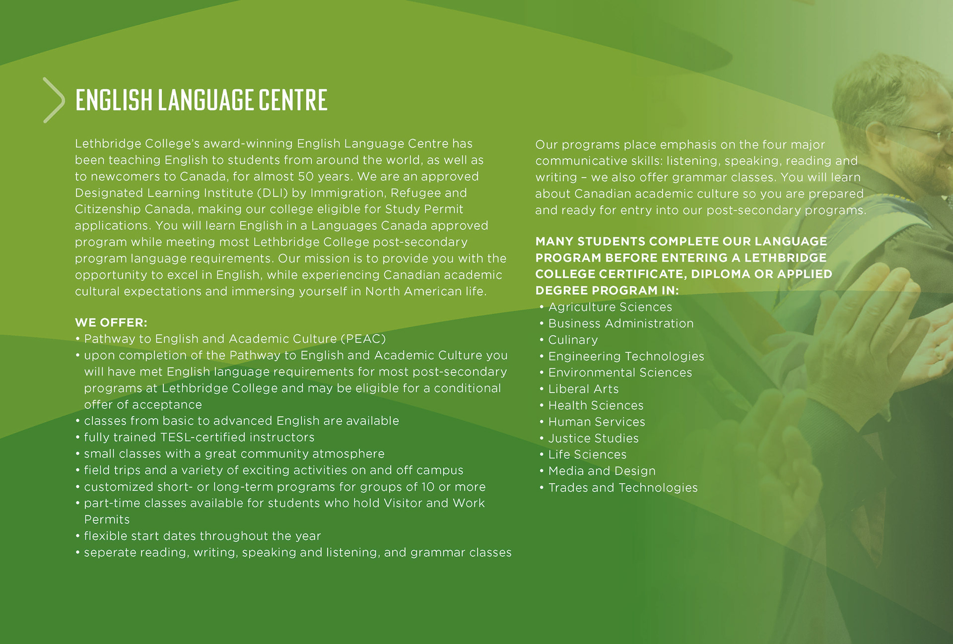 A booklet used by Lethbridge College international recruiters. This book was translated to Portuguese, Spanish, Korean, Vietnamese and Japanese